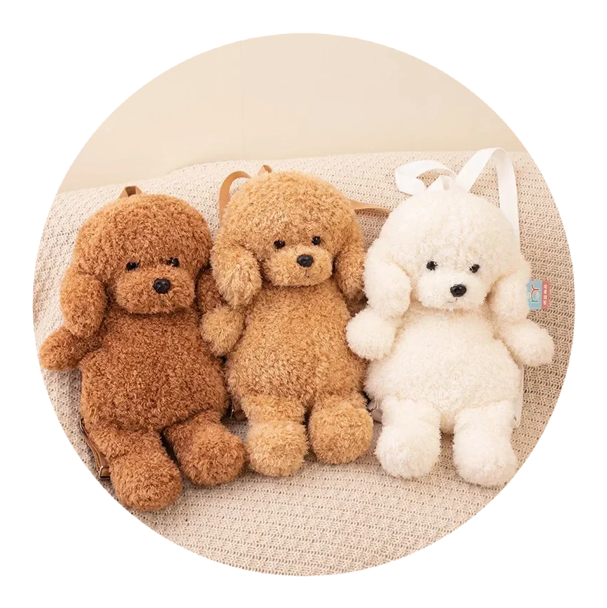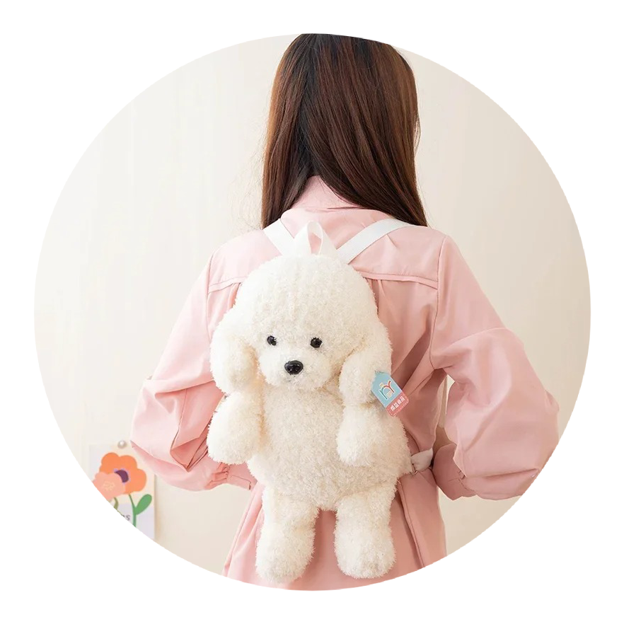 A soft poodle plushy backpack designed for comfort and playful adventures.❤️